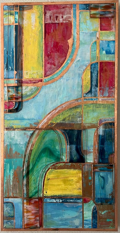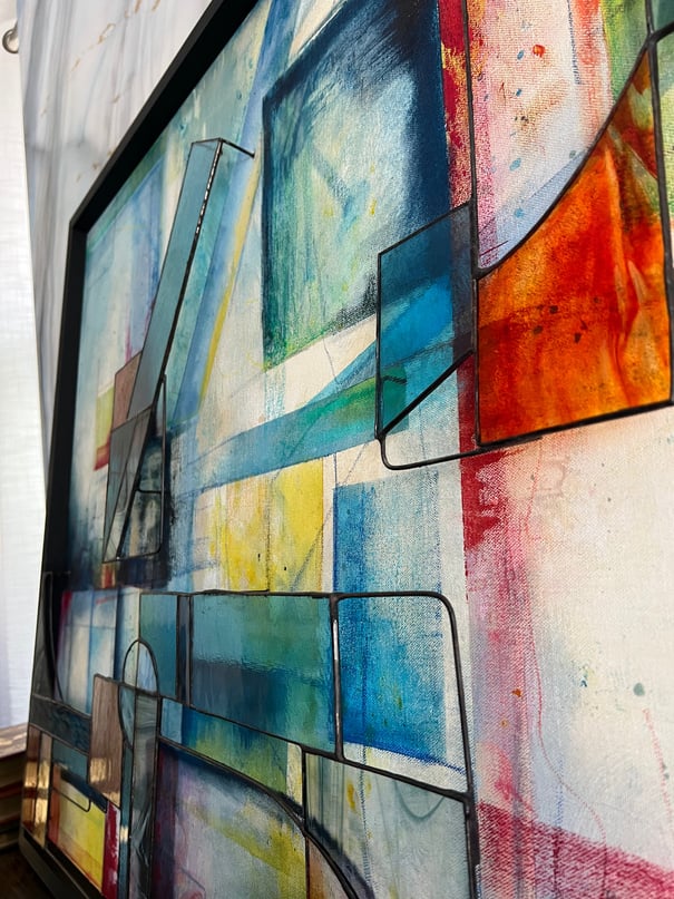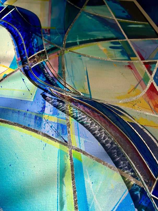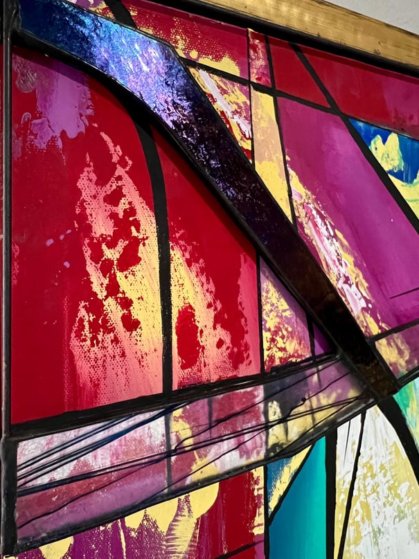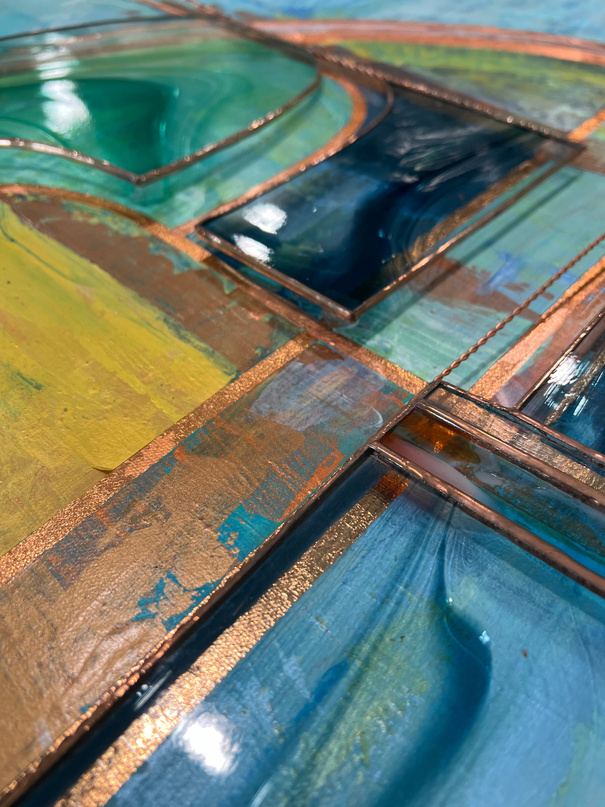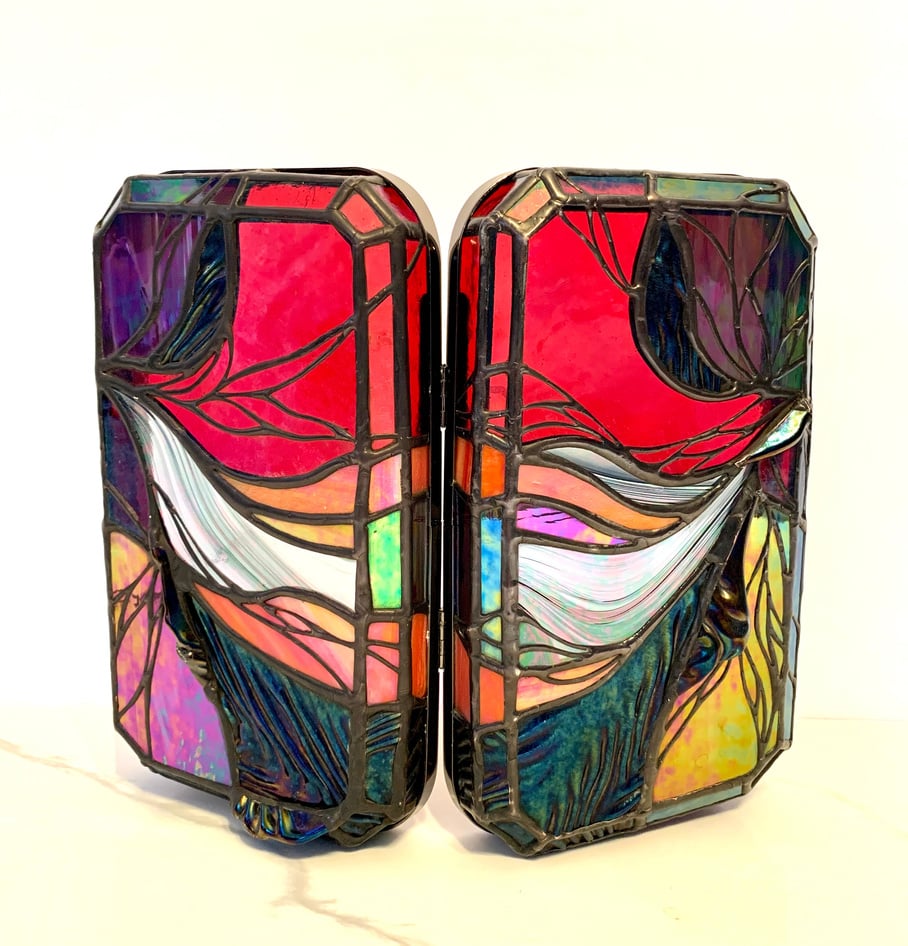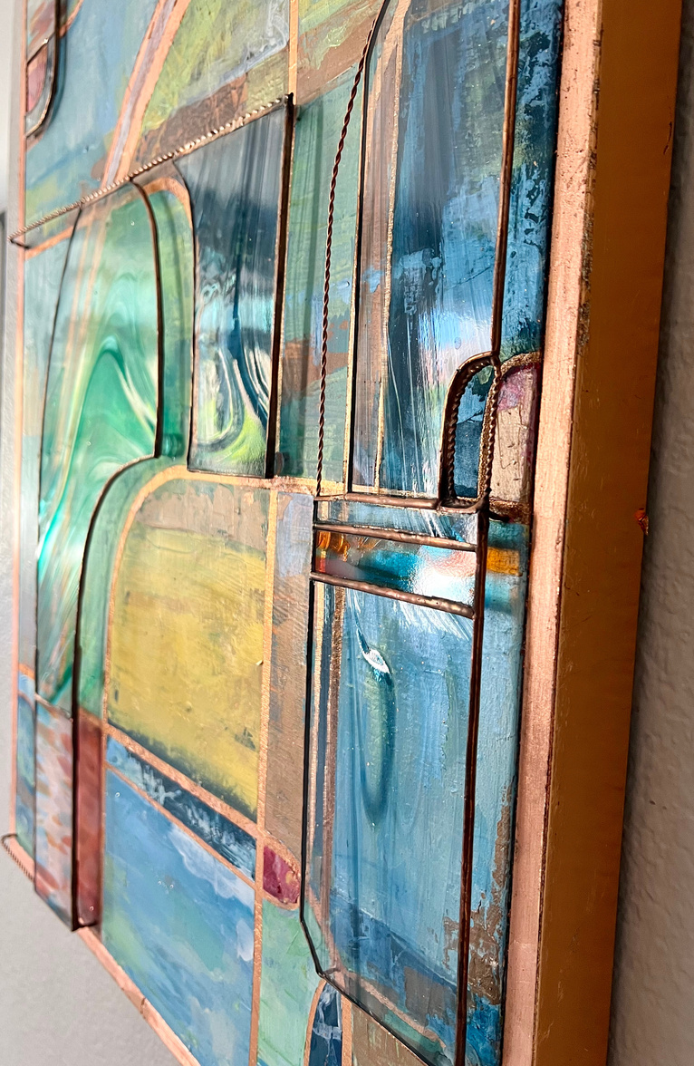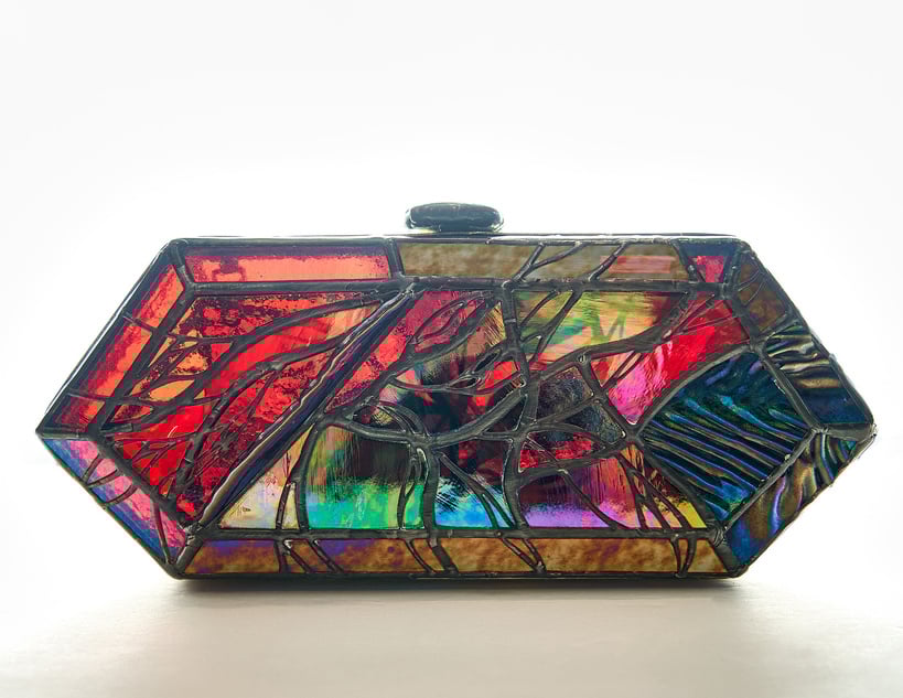 Stained glass is born from architectural contours and fiery industrial processes. I reinterpret that into humanized pieces displayed as fine art or worn as a moving exhibit. Using rare and vintage architectural glass, I translate a traditionally rigid building process into modern, intricate and illuminated designs.