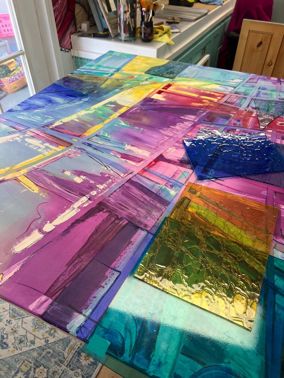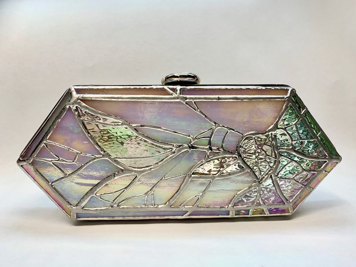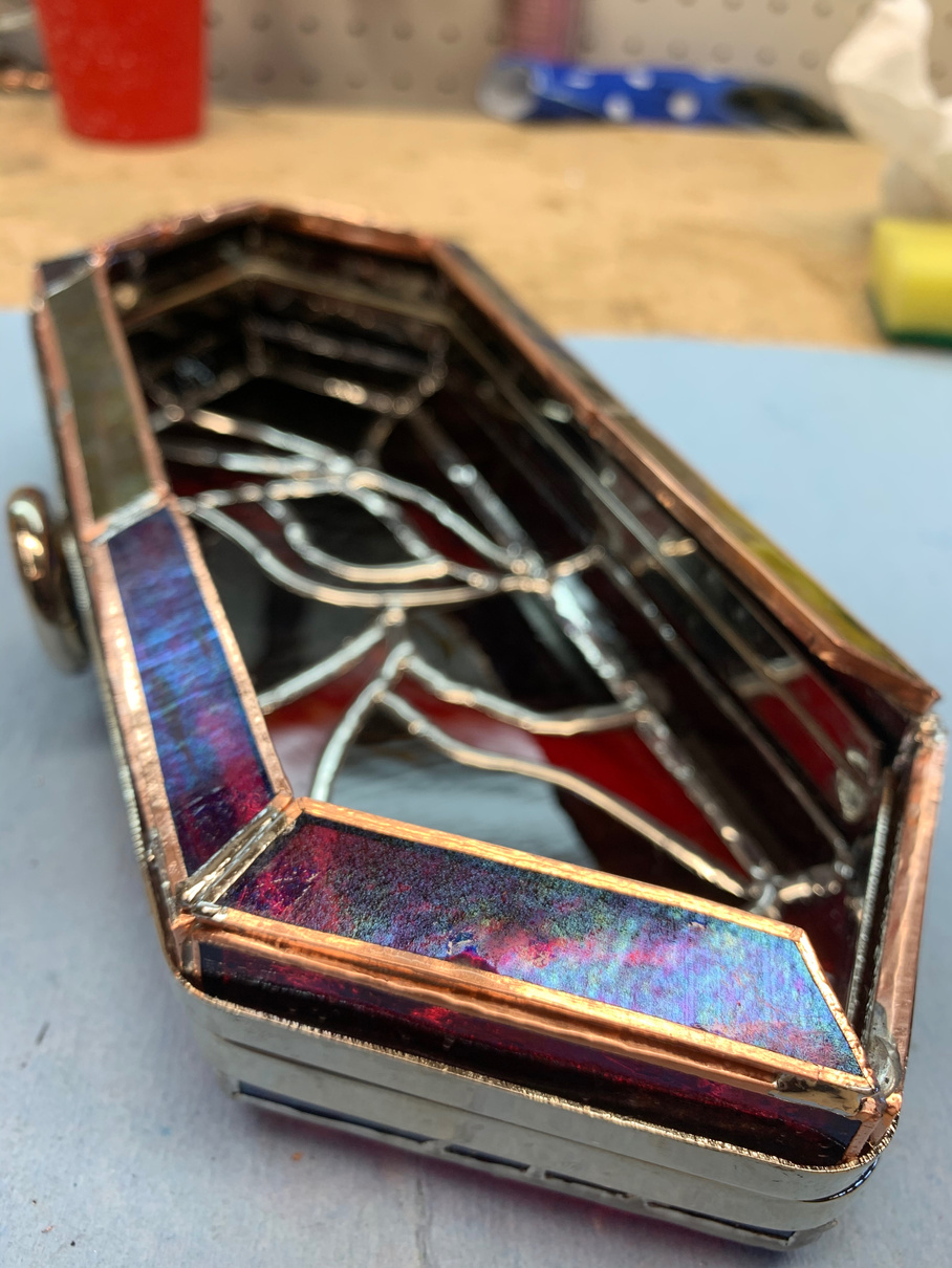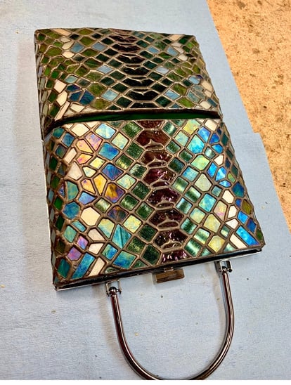 I work with modern iridescent and opaque glass although my preference is to build with reclaimed and vintage or mouth blown sheets. The glass itself carries a history and story before it is reimagined.