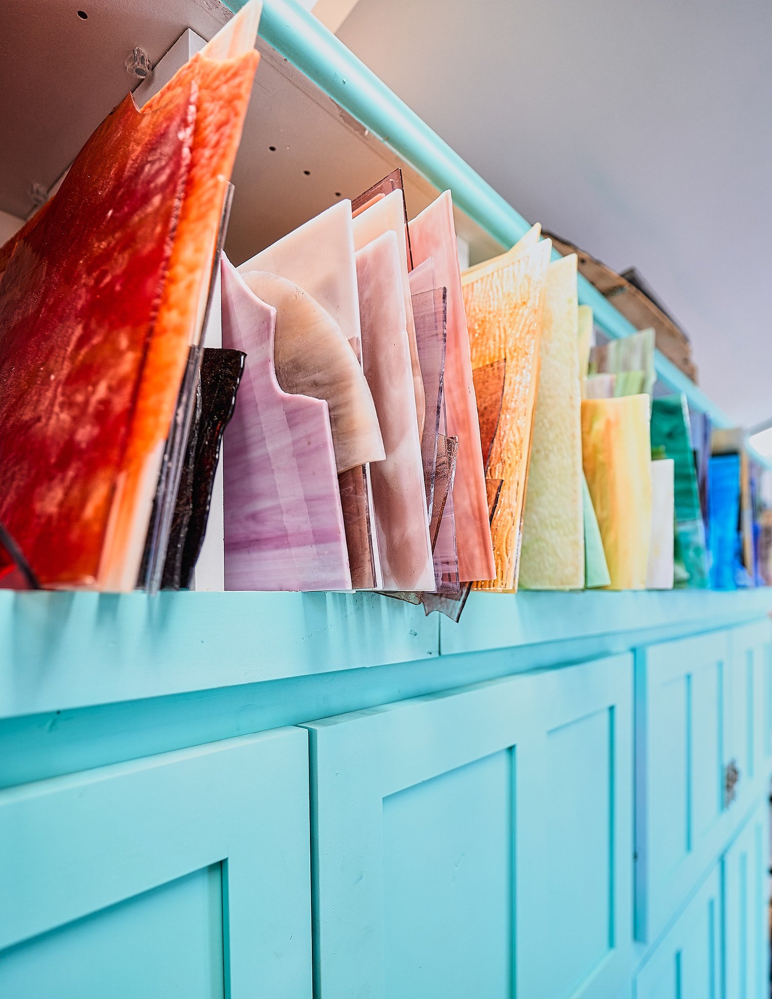 I strive to push the structural boundaries of glasswork. I love transforming architectrual glass into an organic dimensional piece. I am mesmerized by how glass morphs through the waning sunlight. A piece can change hundreds of times simply by the angle of perspective or the shifting light. My goal is to create timeless pieces that reflect movement and gain character, patina, and stories as they age.